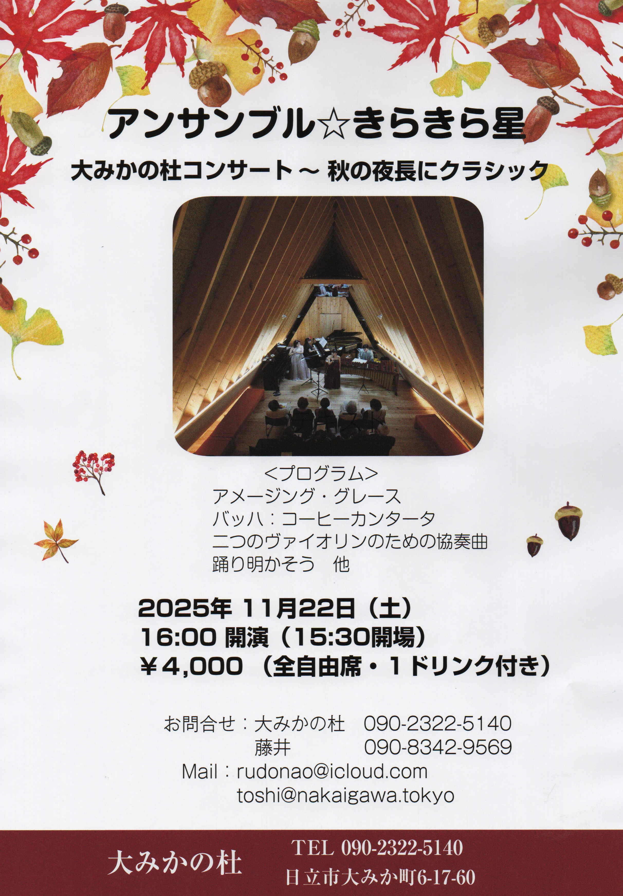 ■11/22 アンサンブル☆きらきら星コンサートのご案内!